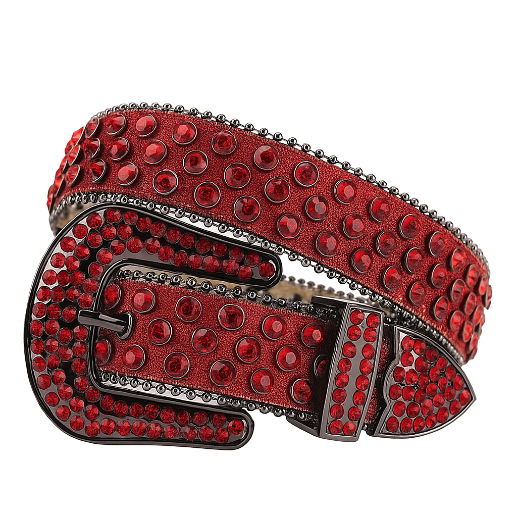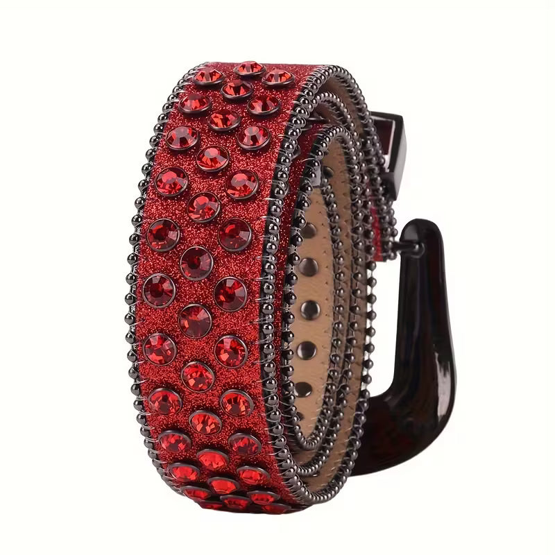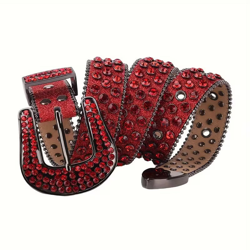 Pasek czerwony, unisex z cyrkoniami i sztuczną skórą