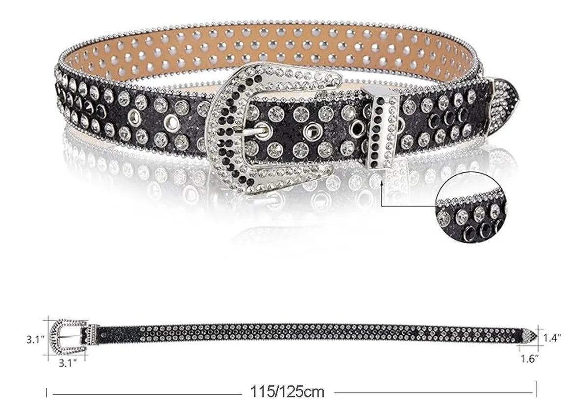 Pasek czarny, unisex z nitami, ze stopu, z diamentami i kryształkami