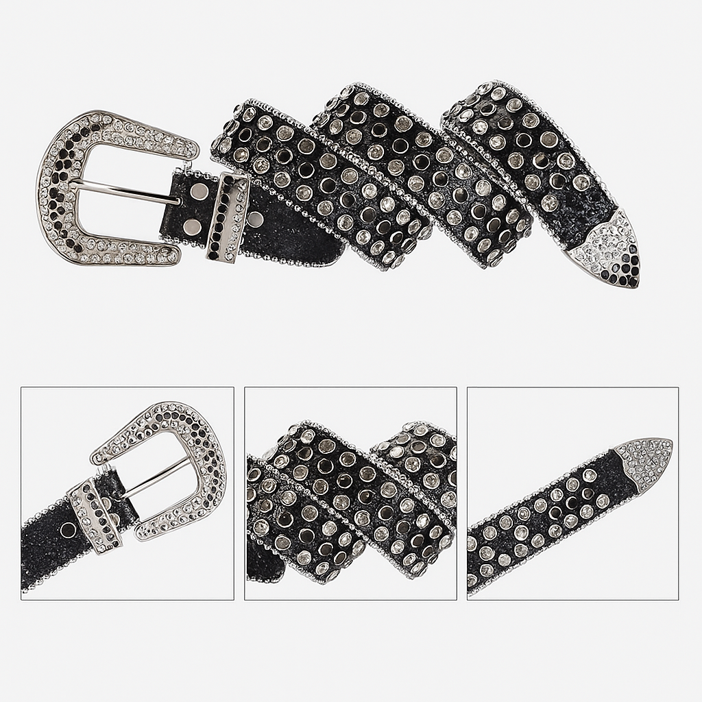 Heelt Crystal Edge™ to wyjątkowy pasek do spodni ozdobiony precyzyjnie osadzonymi cyrkoniami, które odbijają światło przy każdym ruchu. Wykonany z wysokiej jakości skóry ekologicznej, łączy trwałość z elegancją. Regulowane zapięcie pozwala na idealne dopasowanie do sylwetki, a połysk cyrkonii dodaje stylizacji luksusowego wykończenia — niezależnie od okazji.